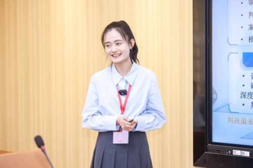 在法学论文组中,评委老师们建议:论文写作要侧重于法学理论的分析论证、避免大量知识点的教科书式堆砌介绍;论文选题要聚焦核心问题、就未知问题提出自己的独到见解,知识铺垫部分篇幅不应过大;各级标题间也需保持一致,并辅之以内容上的充分回应。此外,评审老师还指导选手要注意答辩展示时的语速、语调等,语言也可采取听众友好型,便利非专业领域人士。