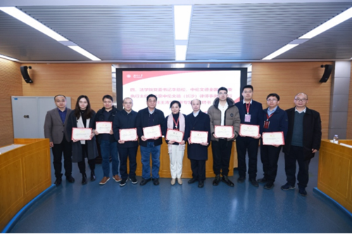 《高等学校文科学术文摘》编辑部沈丽飞、《政法论丛》编辑部孙培福、《比较法研究》编辑部丁洁琳、《法学家》编辑部尤陈俊、《现代法学》编辑部邵海、《当代法学》编辑部龚浩川、《政治与法律》编辑部蔡蔚然以及湖南大学法学院王聪等专家受聘现场评审嘉宾。法学院党委书记李劲松、中伦文德全国刑专委执行主任、北京中伦文德(长沙)律师事务所执行主任王涛为评审专家颁发聘书。