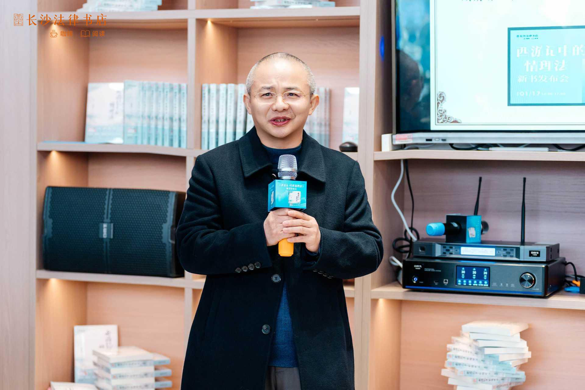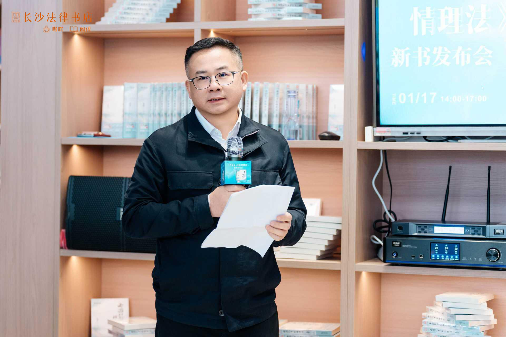 湖南大学法学院院长黎四奇教授致辞。他诚挚感谢大家对法学院学术活动的支持。他认为本书为常规的法学研究带来了创新活力,作者海松在《百家讲坛》等新型普法深入人心,成为靓丽的风景线。黎四奇在《情理法与法理情》的主题发言中提出,情理法是中国传统法律文化的核心范畴,这一视角既兼顾了过去,又展望未来。情是中国文化的命脉,也是法律的价值关怀。今天诸多校友跨省而来参加活动,就体现了浓郁的情感。但传统中一味重情,也可能淹没权利意识。在未来也要完成从情理到法理的转变,更倡导正义、秩序、规则,期待海松未来创作一本《西游记中的法理情》,把法放在前面,这也是传统到现代的价值转型。