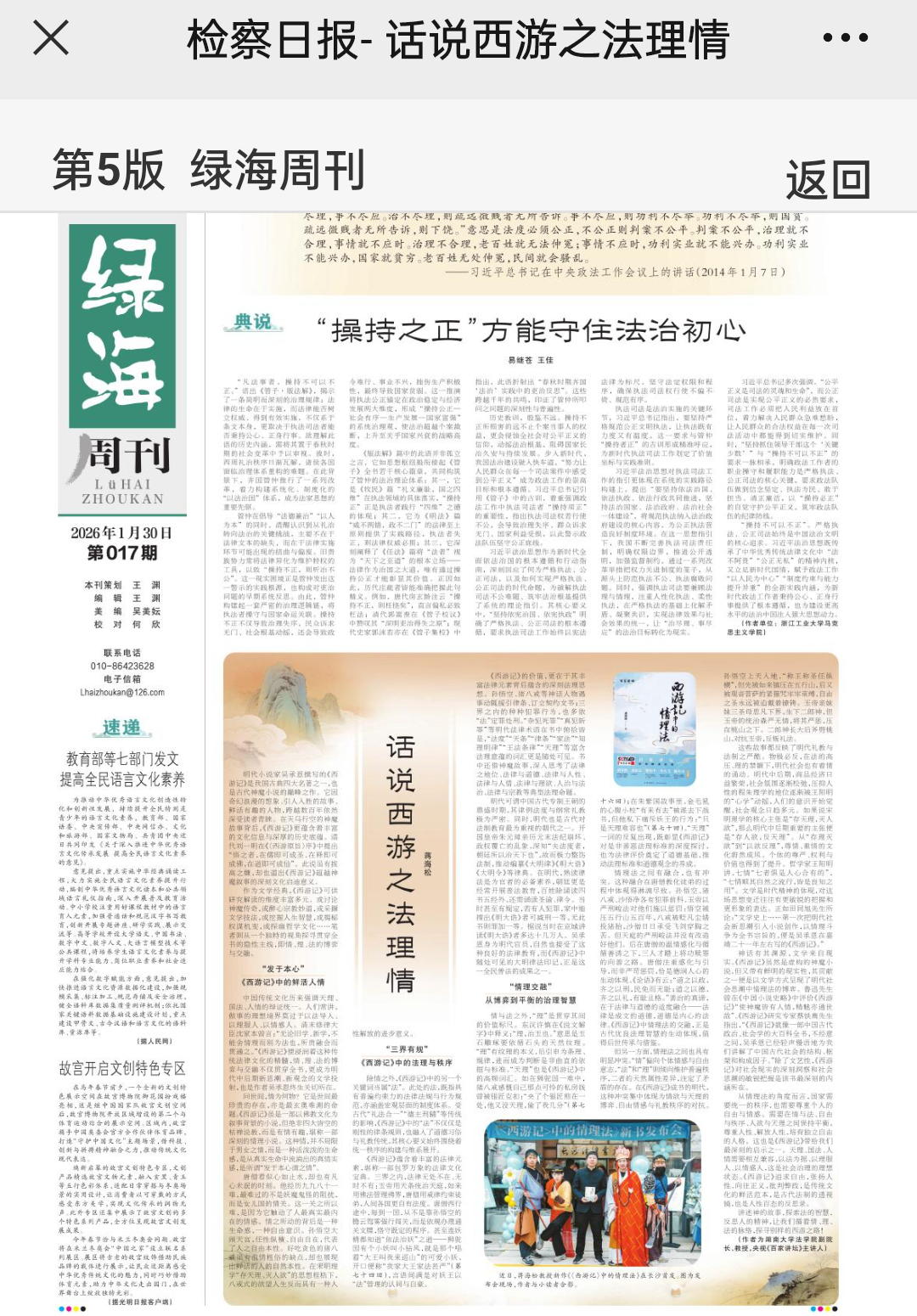 1.《法治日报》2026年1月25日 报道 《用法理之眼观照神话文学——〈西游记中的情理法〉新书发布会侧记》