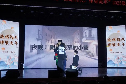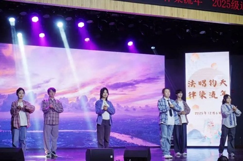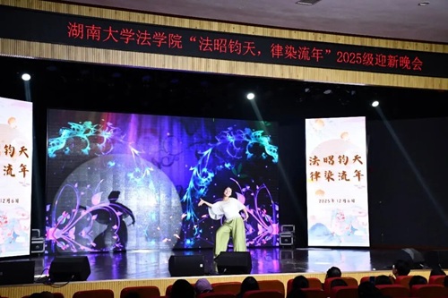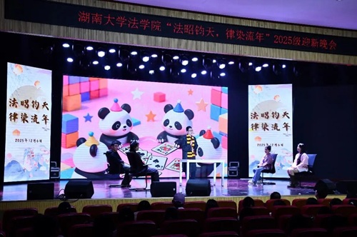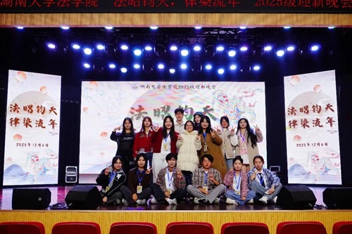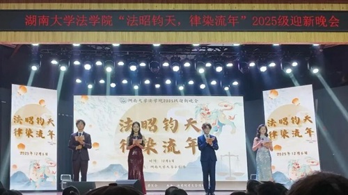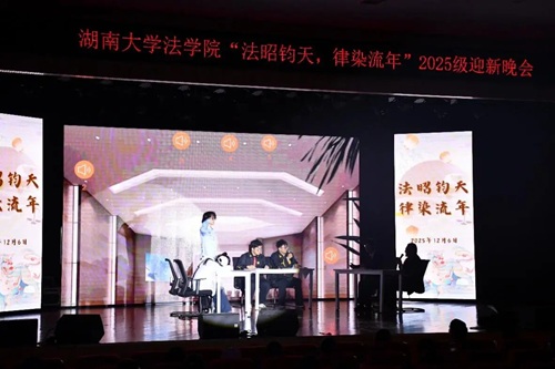 华堂溢彩,呈法苑迎新之盛景;学子云集,谱青春筑梦之华章。12月6日,湖南大学法学院“法昭钧天,律染流年”2025级迎新晚会在天马小剧场顺利举行。法学院党委副书记、纪委书记胡琼老师、法学2502班班主任张晓勇老师、法学院团委书记、本科生辅导员曹晓军老师与法学院2025级全体新生共同奔赴了这一场暖冬之约。现在,让我们跟随一张张定格美好瞬间的照片,重新回到那个熠熠生辉的夜晚。